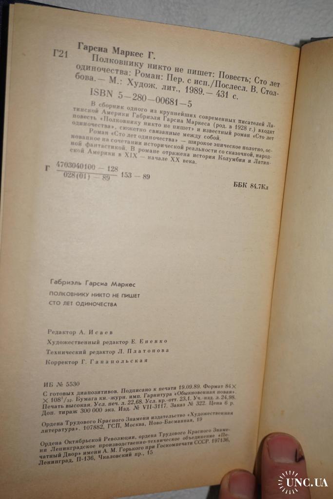В сборнике одного из крупнейших современных писателей Латинской Америки Габриэля Гарсиа Маркеса (род.1928г.) входят повесть `Полковнику никто не пишет` и известный роман `Сто лет одиночества`, сюжетно связанные между собой. Роман `Сто лет одиночества` - широкое эпическое полотно, основанное на сочетании исторической реальности со сказочной, народной фантастикой. В романе отражена история Колумбии и Латинской Америки в 19 - начале 20 века.