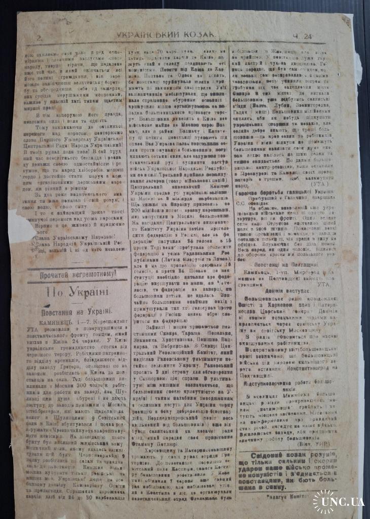 Український козак — фронтова газета Української народної армії, яку видавало Польове відділення Міністерства преси та пропаганди УНР як щоденну. У газеті, зокрема, публікувалися списки загиблих козаків і старшин, інформація про селянські повстання проти більшовицької влади та Добровольчої армії А. Денікіна. Публікувалися вірші В. Сосюри під час його перебування у війську С. Петлюри.