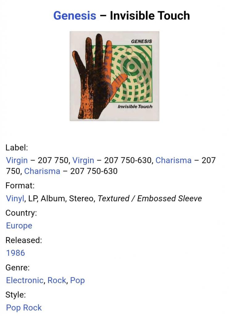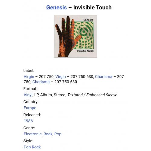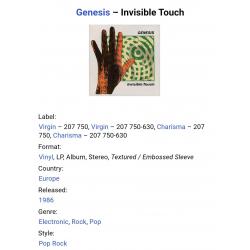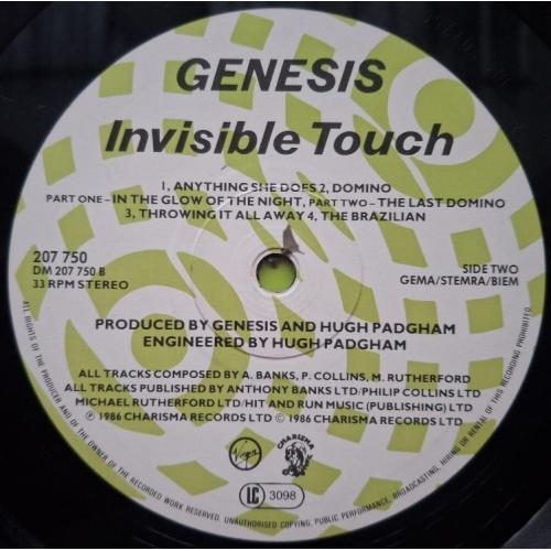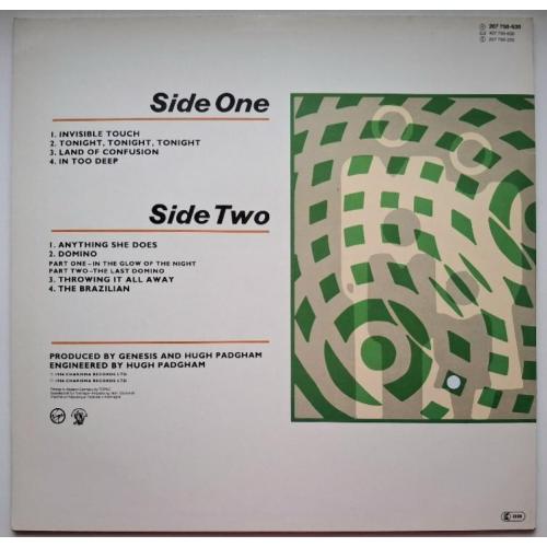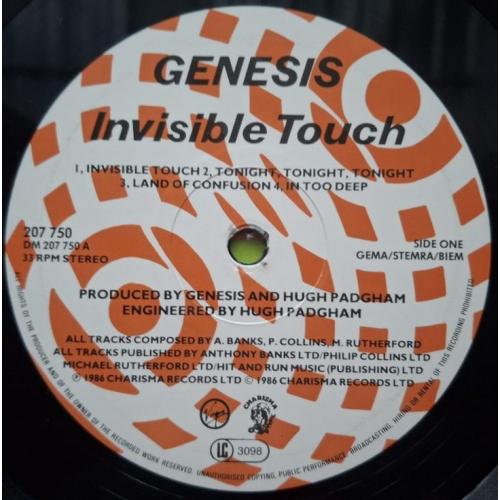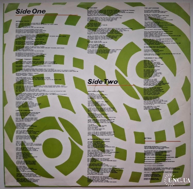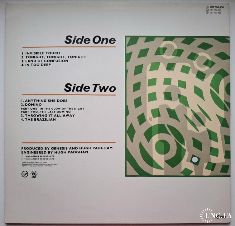 Вінілова платівка. Чотирнадцятий, в дискографії, студійний альбом, Британської прог-рок групи Genesis, основними учасниками якої були Філ Коллінз, Тоні Бенкс та Майк Резерфорд (Invisible Touch) 1986. Випуск фірми (Virgin / Charisma) Germany, 1986-ий рік. Оригінальне, першопресове, Німецьке видання. Стан платівки ЕХ+. Стан конверту NM-. В комплекті внутрішня вставка. Відправка по Україні службами доставки: Нова Пошта, Укр Пошта, Делівері. Також відправляємо посилки за кордон по цілому світу.