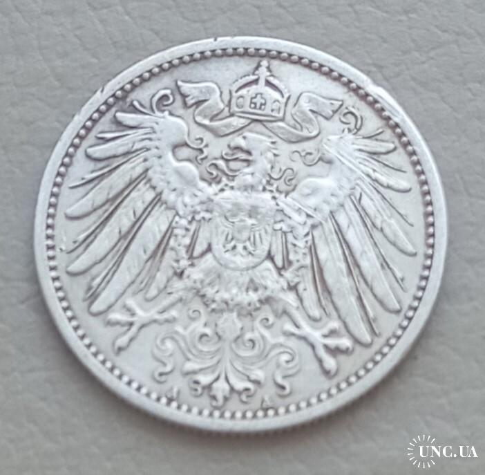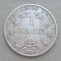 OriginalГермания 1 марка, 1909 г, "A" - Берлин, серебро