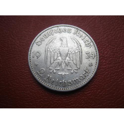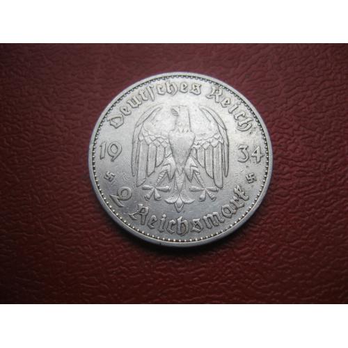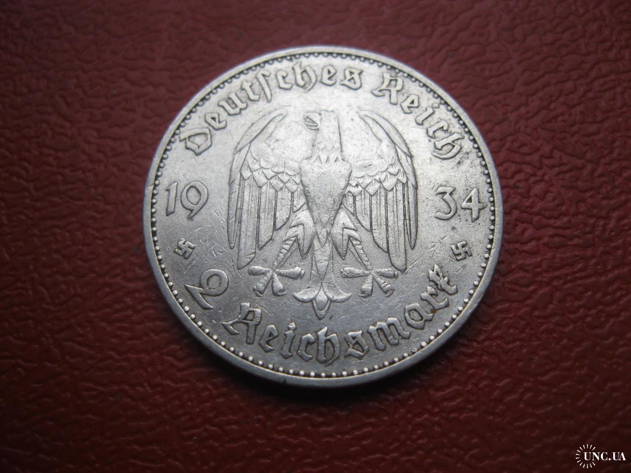 OriginalГЕРМАНИЯ.2 Марки 1934 г А Кирха с датой 1933 г. ТРЕТИЙ РЕЙХ. СЕРЕБРО. У монеты красивый гурт. Хороший сохран.Состояние по фото.
