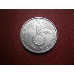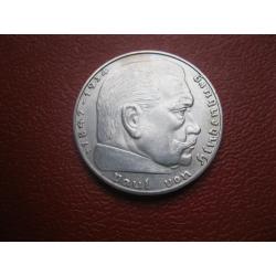 OriginalГЕРМАНИЯ.2 Марки 1937 г F , Гинденбург ТРЕТИЙ РЕЙХ. СЕРЕБРО.,Состояние !,XF-UNC.(2) У монеты красивый гурт. Состояние по фото