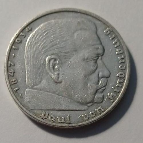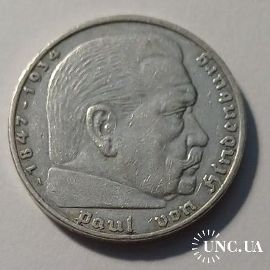 Німеччина. 3 рейх. 5 рейхсмарок (марок). 1936. Срібло.