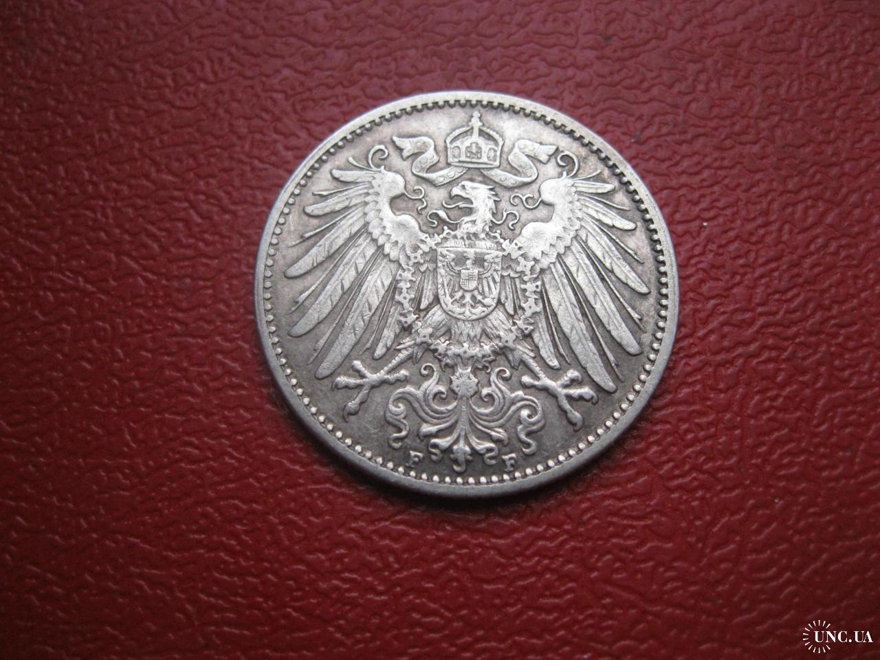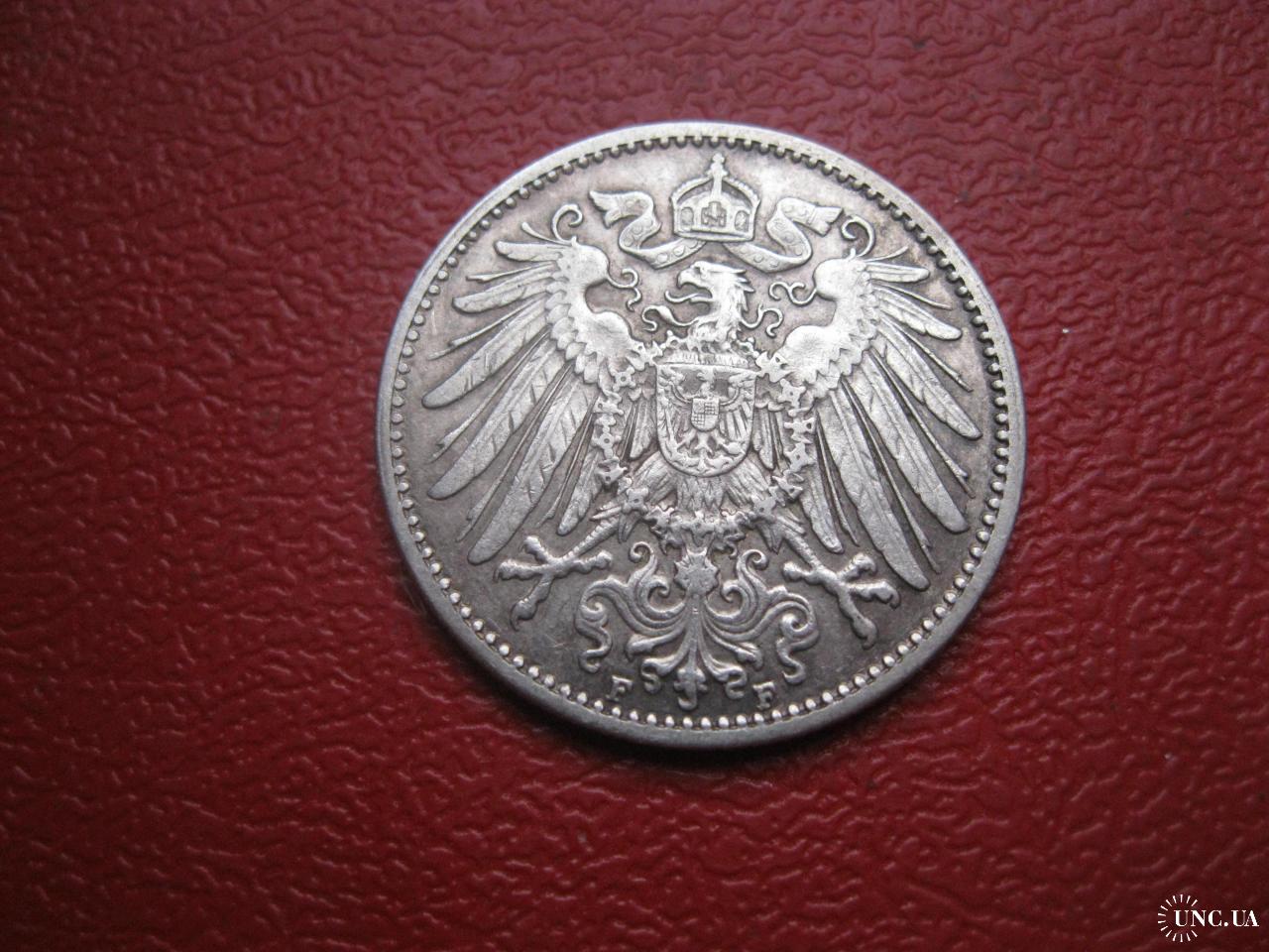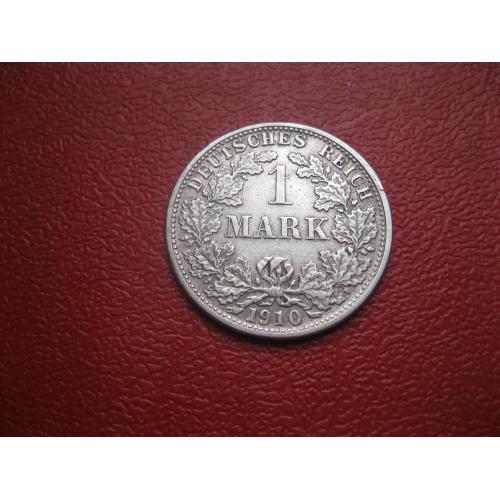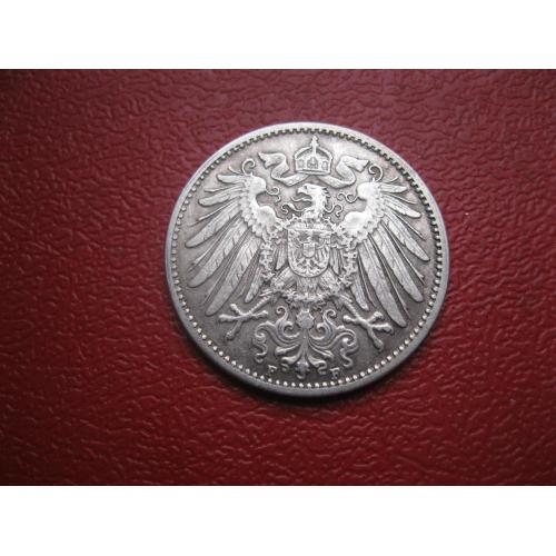 OriginalГерманская империя 1 марка 1910 г. Монетный двор F. Серебро. Оригинал. Отличный сохран..XF-UNC . Состояние по фото