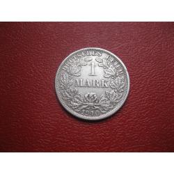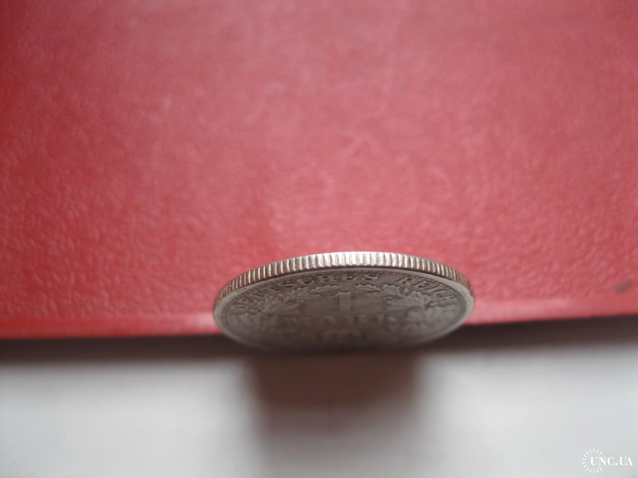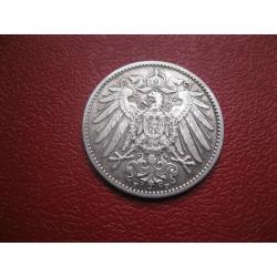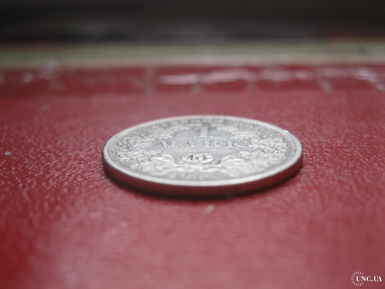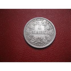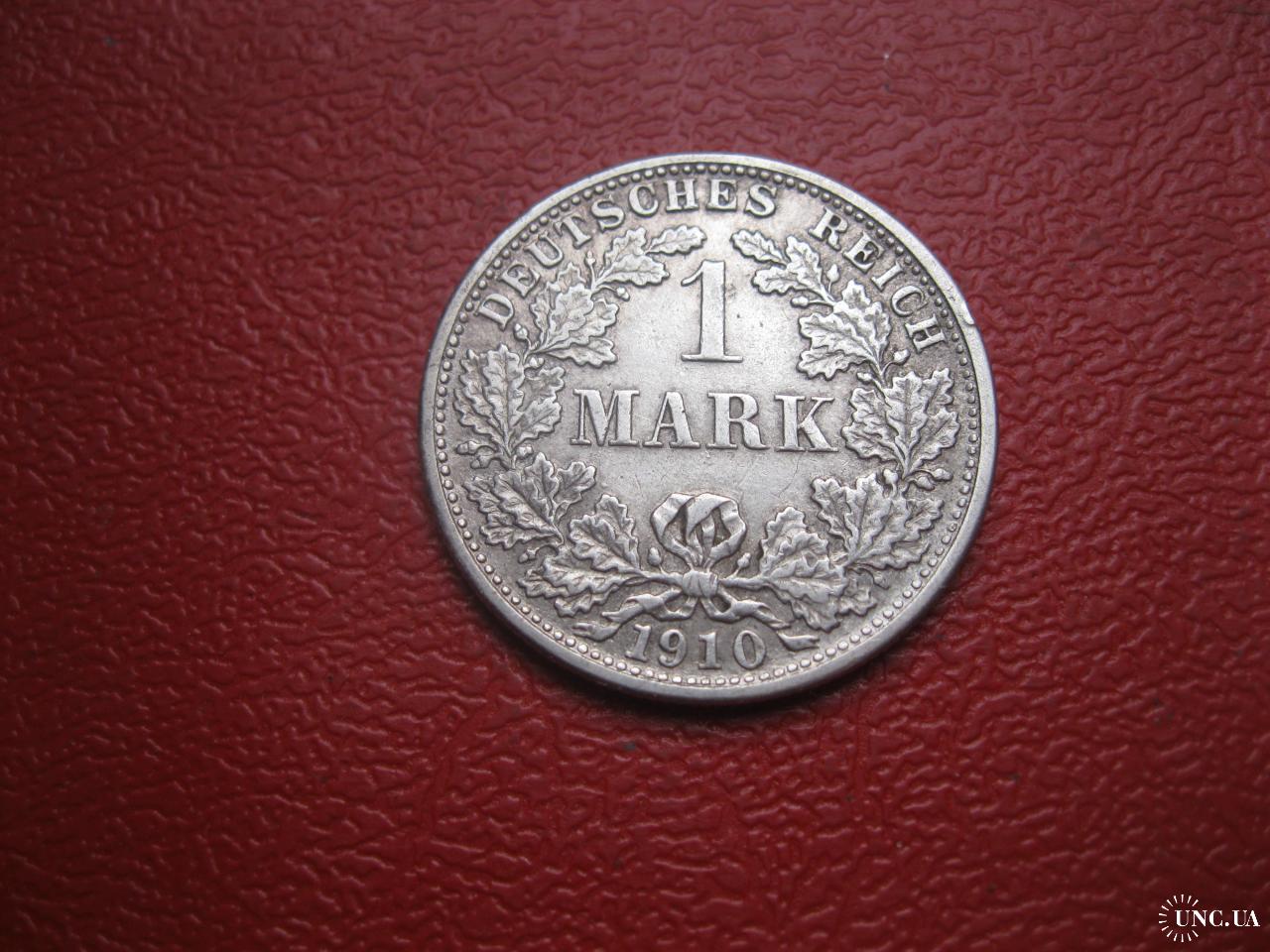 OriginalГерманская империя 1 марка 1910 г. Монетный двор F. Серебро. Оригинал. Отличный сохран..XF-UNC . Состояние по фото