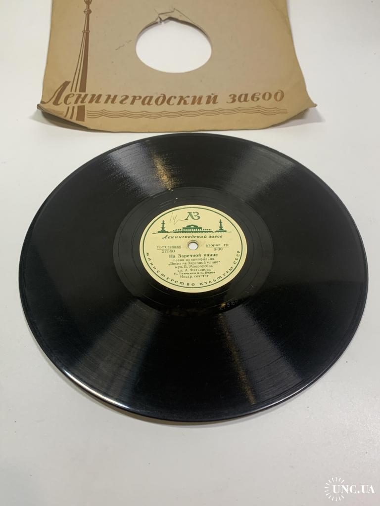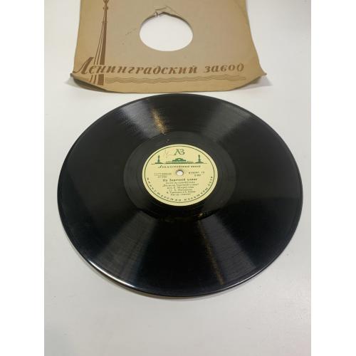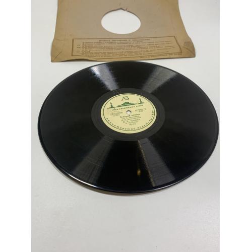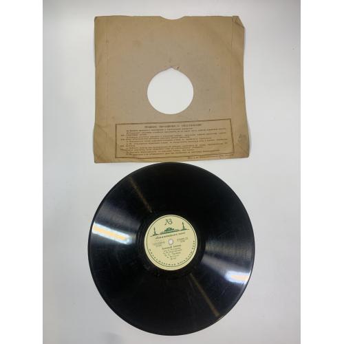 Старинная советская грампластинка довиниловой эпохи, выпущенная Ленинградским заводом в 1950-х годах. Запись выполнена на шеллаке и предназначена для воспроизведения на патефонах со скоростью 78 оборотов в минуту. Пластинка представляет собой ценный коллекционный экземпляр, связанный с культовой советской киномузыкой.