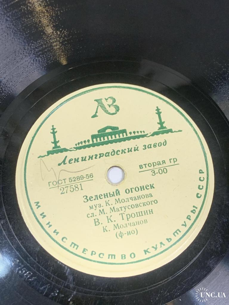 На второй стороне представлена песня «Зелёный огонёк» (музыка К. Молчанова, слова М. Матусовского) в исполнении Владимир Трошин — одного из популярных голосов советской эстрады середины XX века.