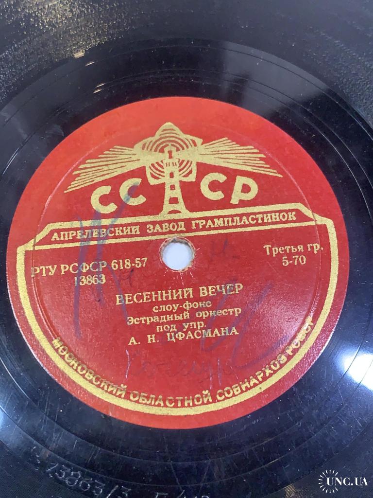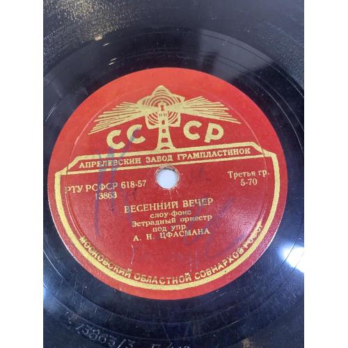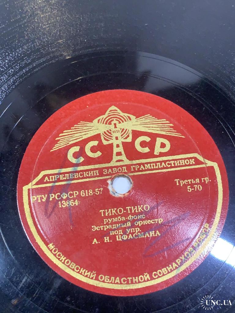 Грампластинка шеллак 78 об/мин «Тико-Тико / Весенний вечер» оркестр А. Н. Цфасмана Апрелевский завод СССР РТУ 618-57 (Н2718)