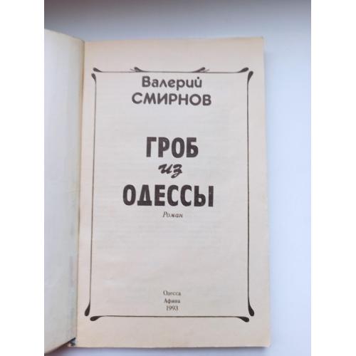 Вы, конечно, можете не верить, ,но новая книга В.Смирнова "Гроб из Одессы" - таки-да криминальный роман, написанный на одесском диалекте Несмотря на то, что роман даже очень остросюжетный, в его основу легли реальные события, происходившие, без понтов, на самом деле Роман охватывает почти столетний период жизни Одессы, а на его страницах, ничего себе, оживают легендарные личности - король Молдаванки Михаил Винницкий, известный по псевдониму Японец, а вовсе не Япончик, его ближайшее окружение - Сеня Вол, Мотя Городенко, Соня Золотая Ручка и многие другие. В том числе, не за нас будет сказано, пока живые, хотя и отошедшие от дел прототипы известных одесских воров, налетчиков и аферистов.