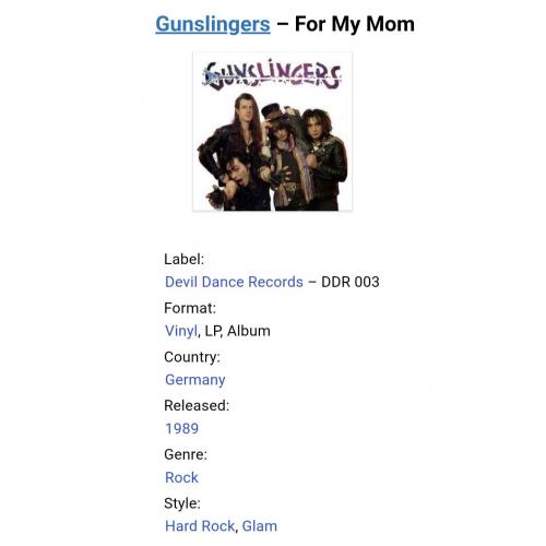 Вінілова платівка. Другий, в дискографії, студійний альбом, Німецької хард-рок, глем метал групи Gunslingers, до складу якого, на той час, входили Херве Розум, Пол Екнесс, Мітчі, Рейні та Макс (For My Mom) 1989 Випуск фірми (Devil Dance Records) Germany, 1989-ий рік. Оригінальне, рідне, першопресове, Німецьке видання. Рідкісне (Rare). Стан платівки EX+. Конверт глянцевий. Стан конверту EX+. Відправка по Україні службами доставки: Нова Пошта, Укр Пошта, Делівері. Також відправляємо посилки за кордон по цілому світу.