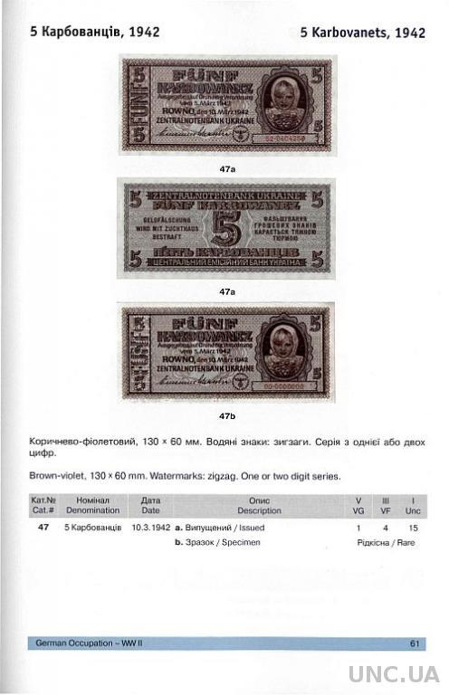 Каталог содержит детальную информацию о правительственных выпусках бумажных денег, отпечатанных для обращения в Украине с 1917 по 2005 годы