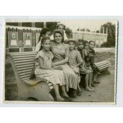 Харьков парк Горького женщина с девочками на скамейке 8,7х11,5 см
