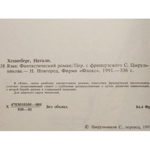 Хеннеберг. Язва. Библиотека зарубежной фантастики. Издательство: «Флокс». 1991 год