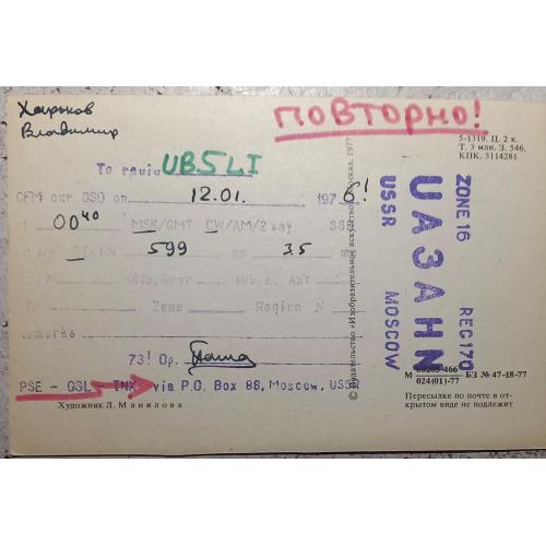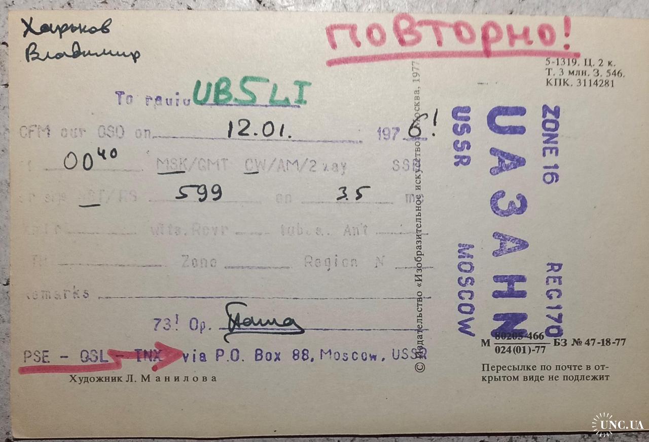 Доставка за счет покупателя Новой или Укрпочтой, заказным письмом, или при личной встрече. Предоплата денежным переводом на карту Приват, через Укрпочту, или другим согласованным способом. Возможно комбинирование лотов. Большой ассортимент, включая QSL-карточки. Готов отправлять за границу.
