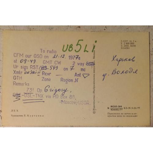 Доставка за счет покупателя Новой или Укрпочтой, заказным письмом, или при личной встрече. Предоплата денежным переводом на карту Приват, через Укрпочту, или другим согласованным способом. Возможно комбинирование лотов. Большой ассортимент, включая QSL-карточки. Готов отправлять за границу.