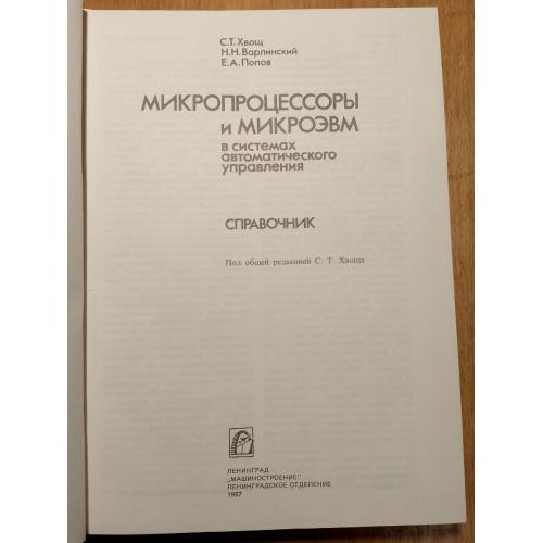 Хвощ. Варлинский. Попов. Микропроцессоры и микроэвм в системах автоматического управления.