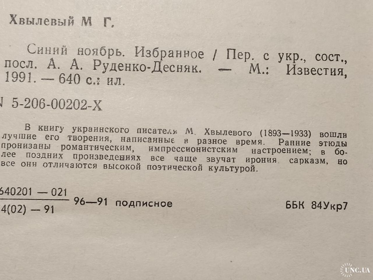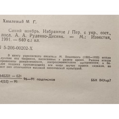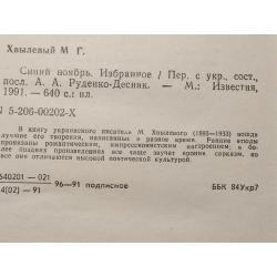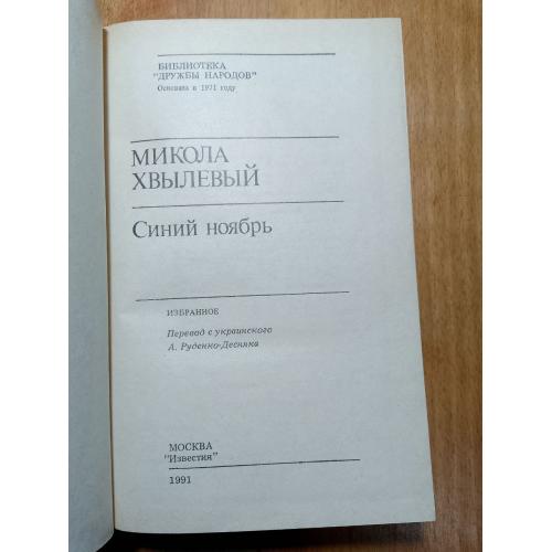 Хвылевый. Синий ноябрь. Библиотека Дружбы народов. Издательство Известия 1991 год. Состояние отличное