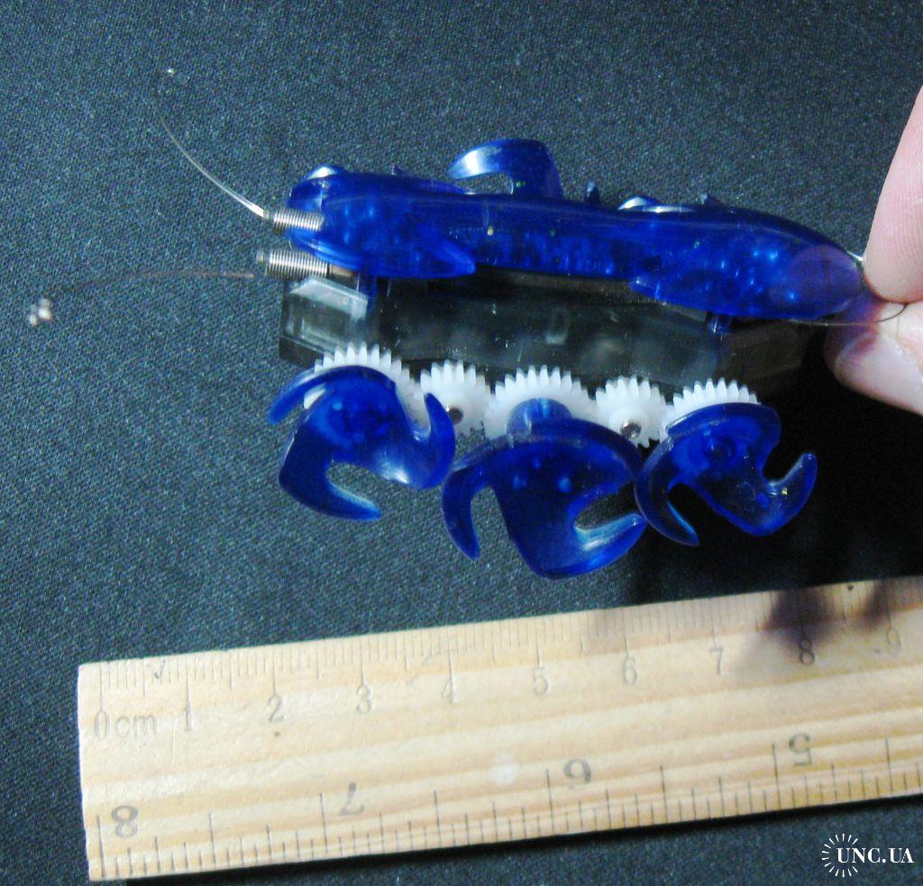 Работает таким образом что при столкновении с преградой как передней частью (металлическими усиками) так и задней частью (металлическим хвостиком), начинает двигаться в противопорложную сторону.
