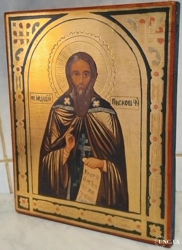 unknown☝️Икона 'Св.Мефодий' 19-20ст. (дерево, масло, позолота..резьба по леваксу) без реставраций и подмазок, размер 18×22,5.Состояние хорошее, коллекционное.