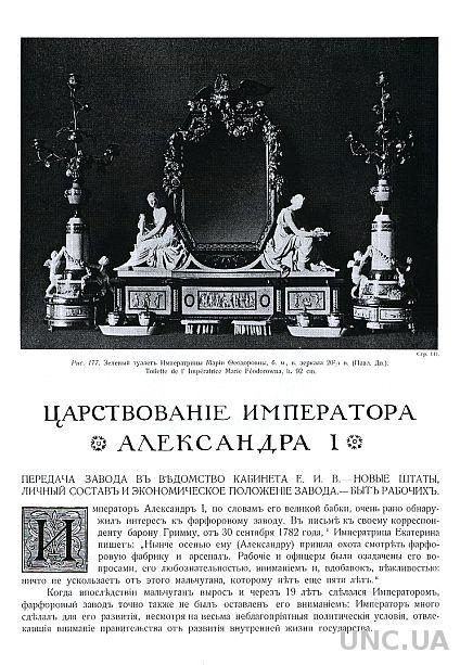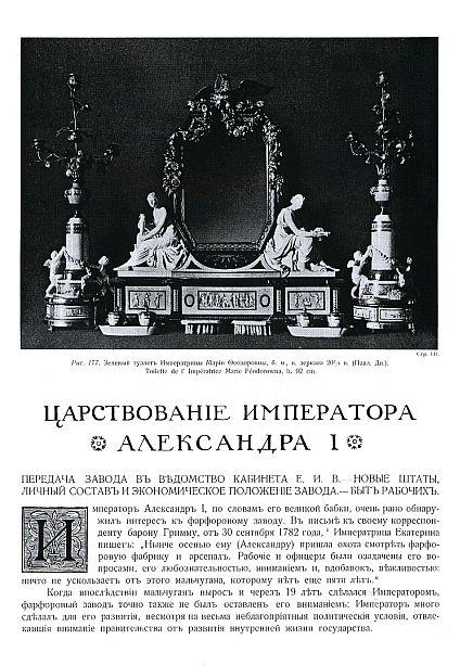 Императорский Фарфоровый завод основан в 1744 г. в Петербурге. Императорский фарфоровый завод - явление уникальное. Его продукция - художественный фарфор - является первым фарфором России, как по времени своего возникновения, так и значительному вкладу в российскую и мировую культуру. Изготавливались все виды фарфоровых изделий - посуда, скульптура, вазы, часы, столы, канделябры и т.д. В конце XIX - начале ХХ века техническое качество изделий было безупречным, а по разнообразию способов обработки и декорирования фарфора завод занимал одно из первых мест в мире. С 1917 года - Государственный фарфоровый завод. С 1925 года - Фарфоровый завод им. М.В.Ломоносова.