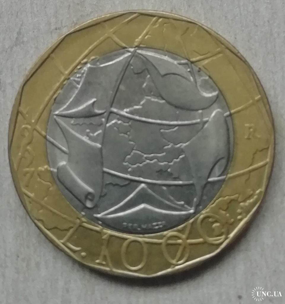 Италия 1000 лир 1997 Евросоюз, карта Европы и ГДР и ФРГ