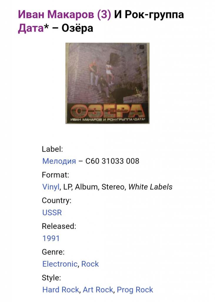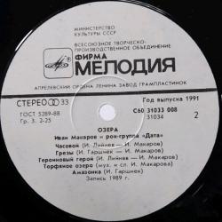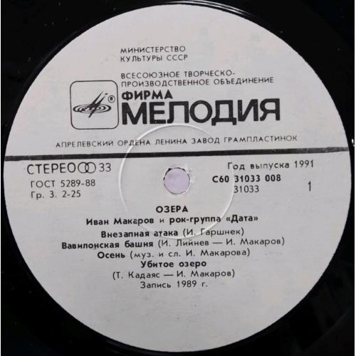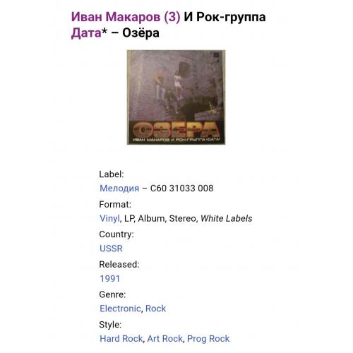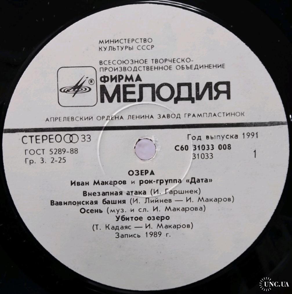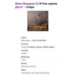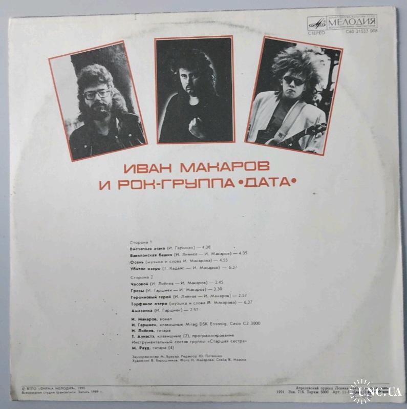 Вінілова платівка. Перший, дебютний, в дискографії, студійний альбом, Естонського (радянського) композитора та виконавця стилю хард-рок, прог-рок, Івана Макарова та групи Дата, до складу якої входили музиканти І. Гаршнек, І. Лійнев, Т. Аунасте та М. Рауд (Озёра) 1989. Випуск фірми (Мелодія) СРСР, Апрелєвський завод грамплатівок, 1991-ий рік. Лімітований тираж (Limited Edition). Стан платівки NM-. Стан конверту EX+. Відправка по Україні службами доставки: Нова Пошта, Укр Пошта, Делівері. Також відправляємо посилки за кордон по цілому світу.