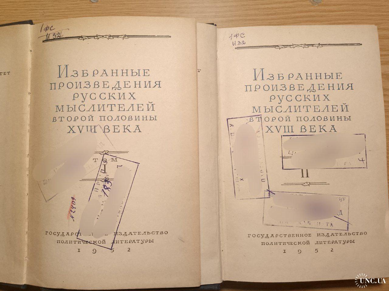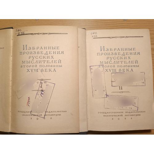 Избранные произведения русских мыслителей второй половины XVIII века. В 2 томах. Издательство: М. Госполитиздат. 1952 год. МГУ, Кафедра истории русской философии. Под общей редакцией и со вступительной статьёй И. Я. Щипанова