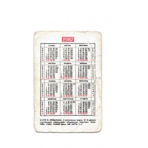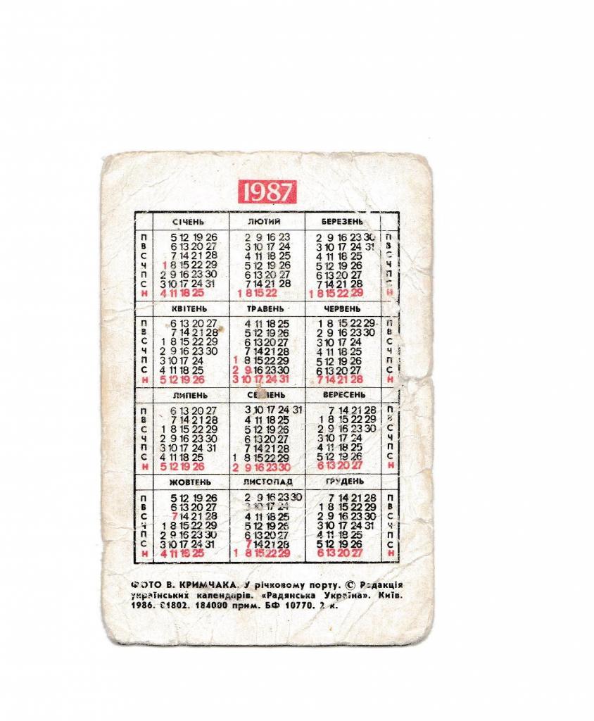 1981-2000Календарик 1987 Черкаси, Метеор, теплоход, "У річковому порту".
