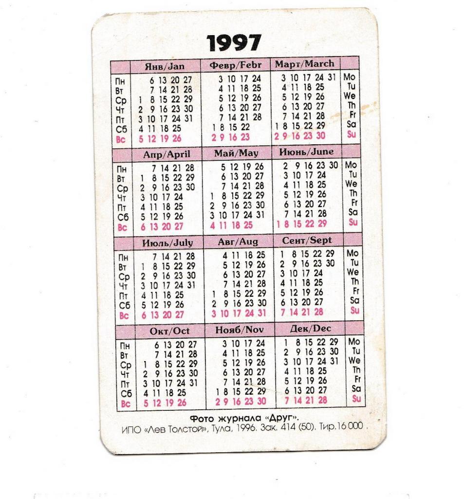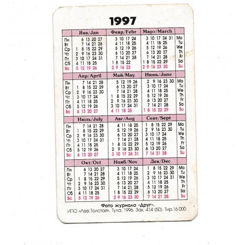 1981-2000Календарик 1997 Кошка.