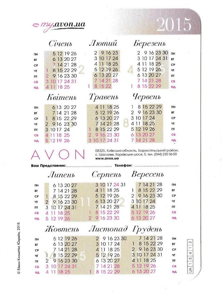 2001-2020Календарик 2015 Парфуми Avon, тіаре, реклама.