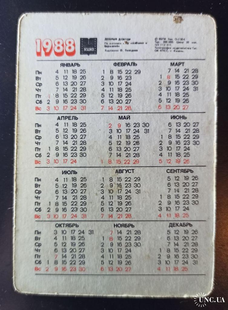 1981-2000Календарик Добрый Доктор 1988, переливающийся