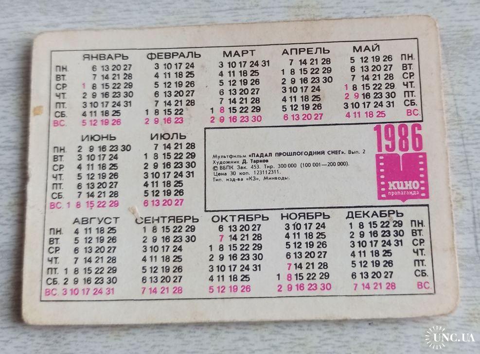 1981-2000Календарик Падал прошлогодний снег 1986, переливающийся