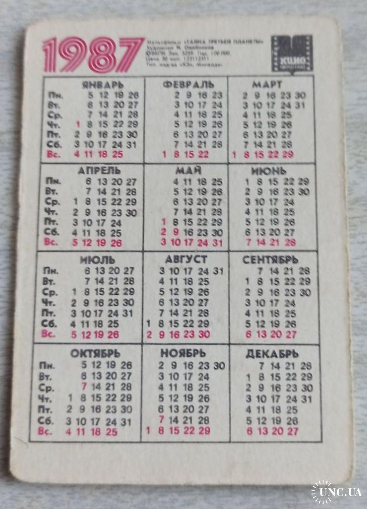 1981-2000Календарик Тайна третьей планеты 1987, переливающийся