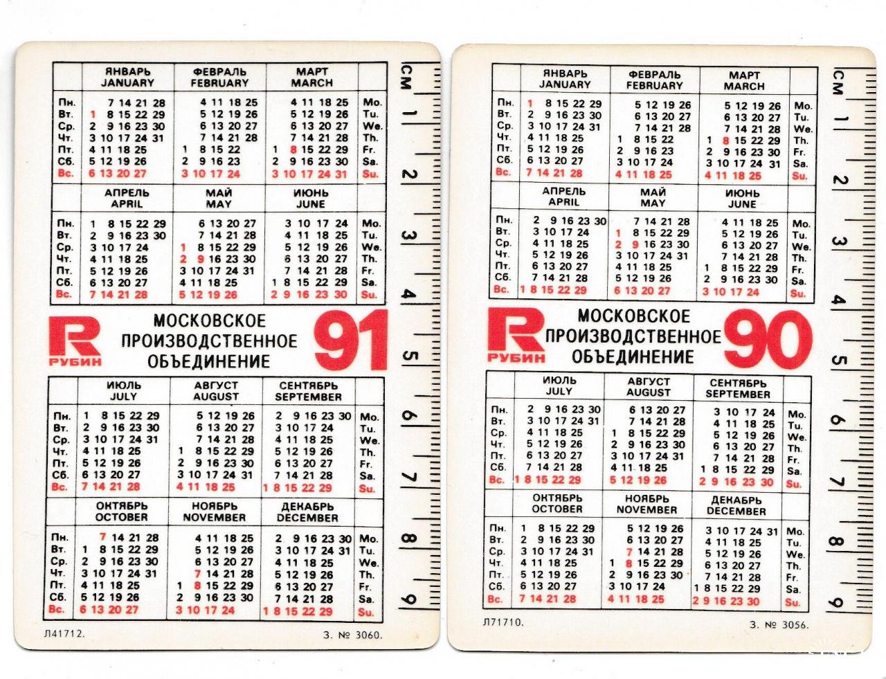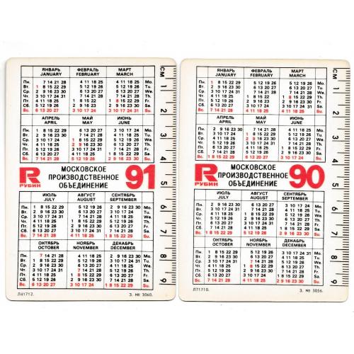 1981-2000Календарики 1990 1991 Производственное объединение Рубин, кремль.