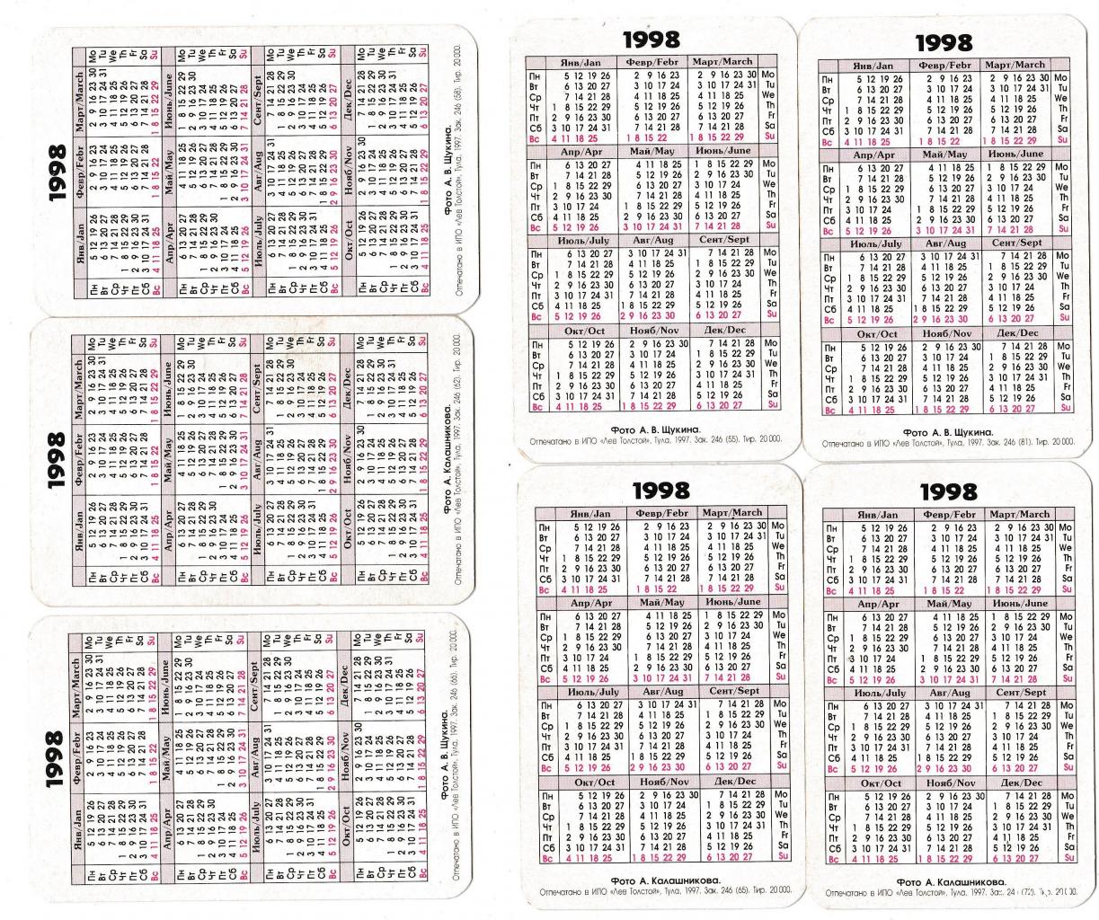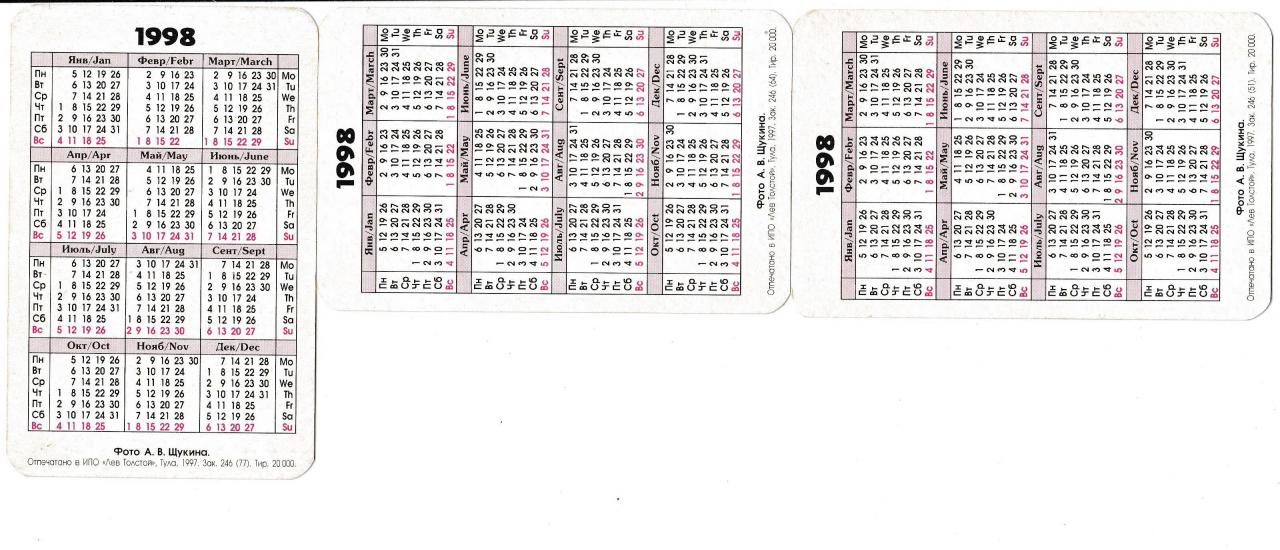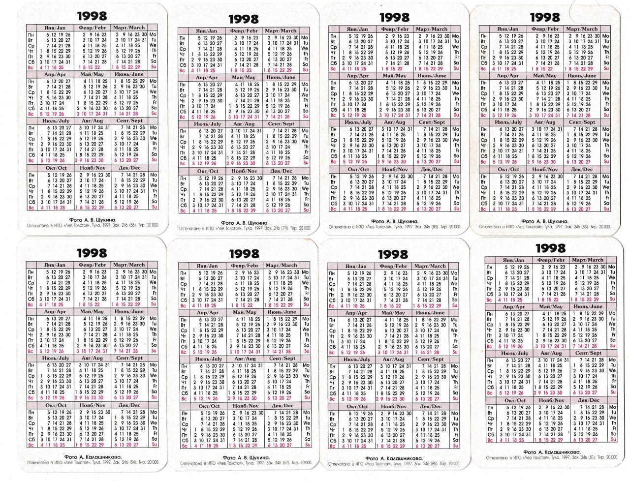 1981-2000Календарики 1998 Кошки, 18 шт.