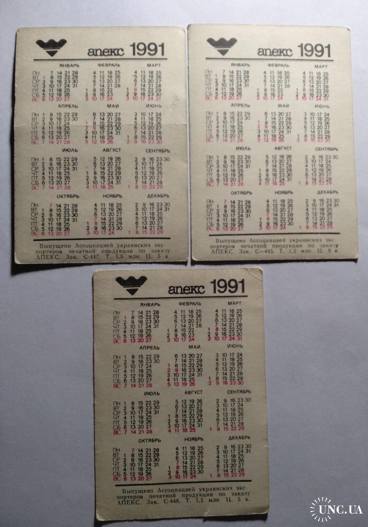 1981-2000Календарики козаки спорт 1991 р.