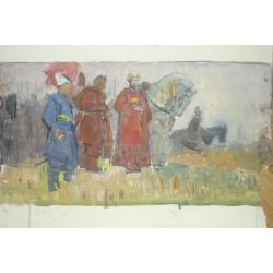 Картина "Червоні козаки (Красные казаки)", роки написання-орієнтовно 1960-1980ті ХХ ст. Розміри: 50Х35 см. Техніка: Картон, Олія. Зустріч та перегляд: м. Київ, р-н. ст. м. "Звіринецька"-"Либідська", вихідні дні.