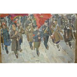 Картина "Солдати революції (Солдаты революции)", роки написання-орієнтовно 1960-1970ті ХХ ст. Розміри: 65Х43 см. Техніка: Картон, Олія.