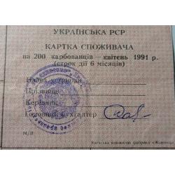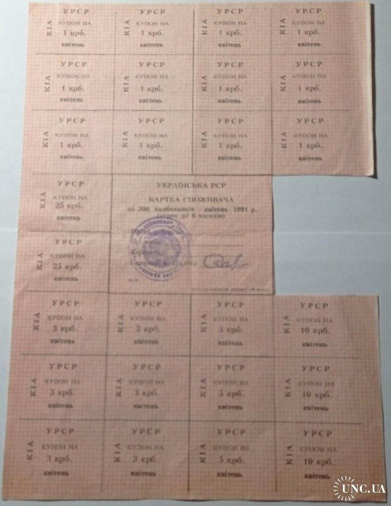 non-availableКартка споживача. Карточка потребителей. Неполный лист купонов. Неповний лист купонів. 200.