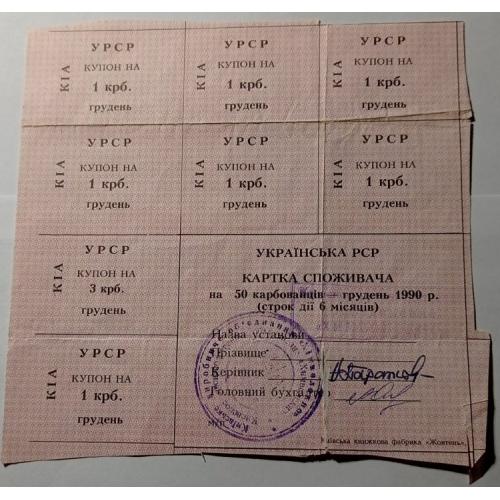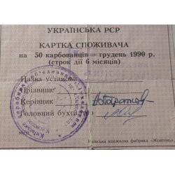 non-availableКартка споживача. Карточка потребителя. Неполный лист купонов. Неповний лист купонів. 50. 1990.