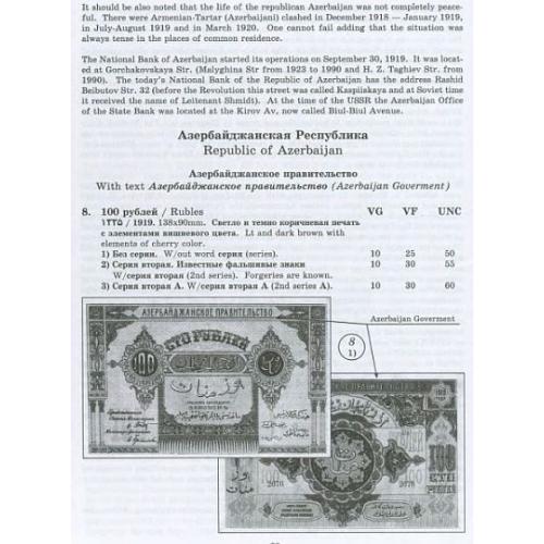 В данном каталоге рассматриваются денежные знаки обязательного обращения, выпущенные в период гражданской войны и становления советской власти в Закавказье.