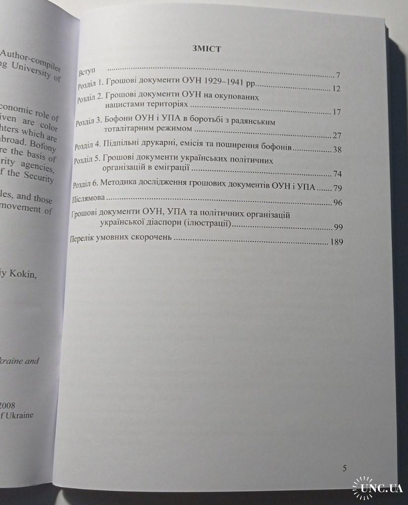 Каталог. Клименко. Бофони: грошові документи ОУН і УПА. Київ. 2008. 190 стор.