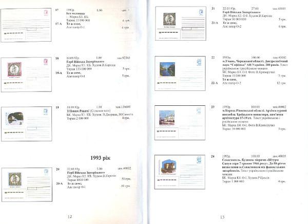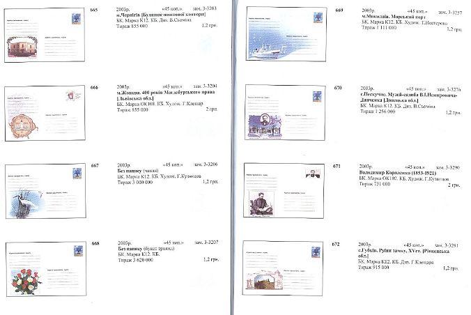 Загалом видано з 1991 р. по 2003 р. і подано опис за основними номерами 709 конвертів.