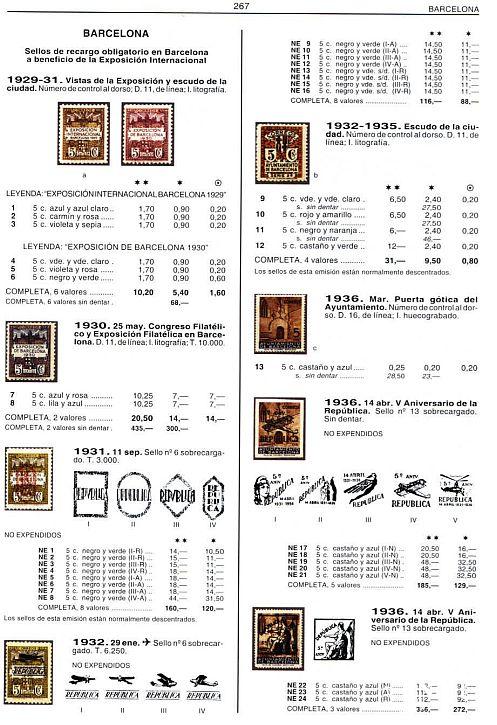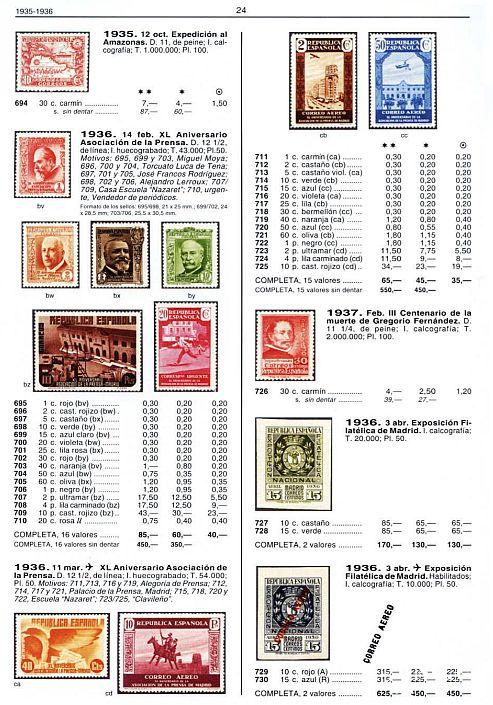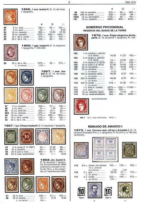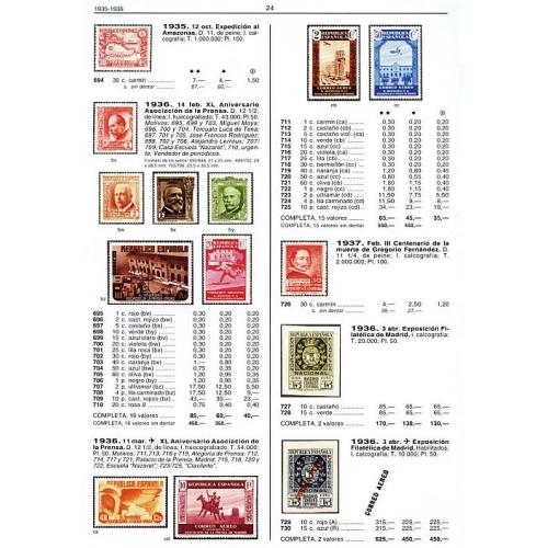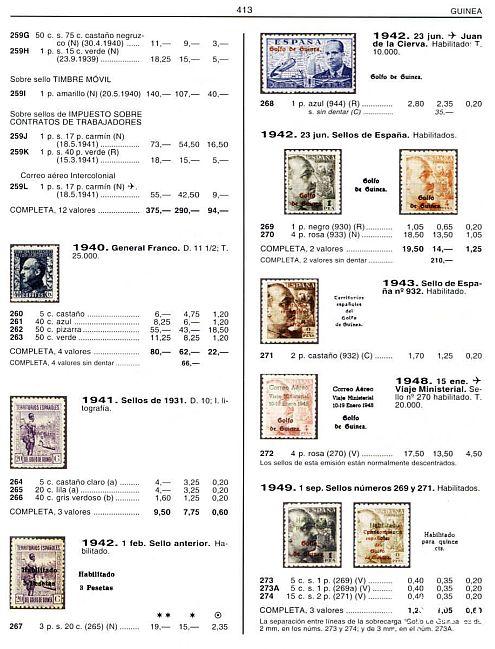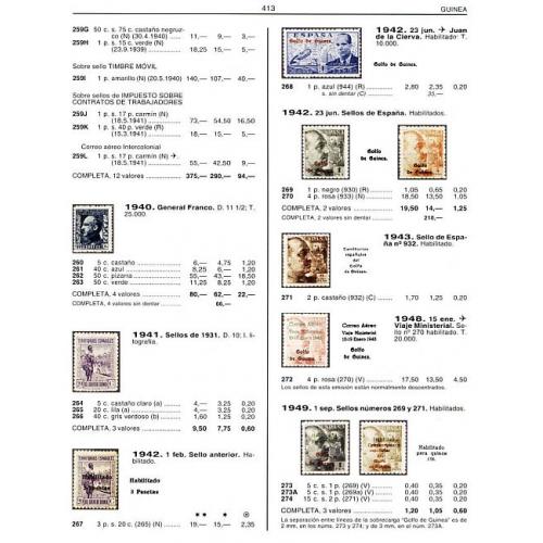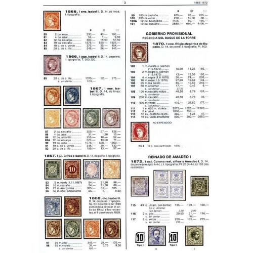 Полный каталог марок Испании и зависимых территорий с 1850 по 2008. Каталог включает марки Испании, городские выпуски, конверты, Андорры, марки бывших колоний и прочее. Каталог цветной, цены в евро.