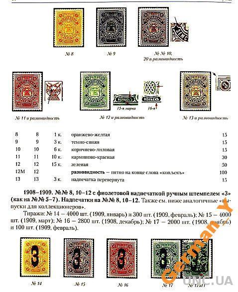 Каталог содержит подробное описание почтовых марок, их типов разновидностей, проб, почтовых гашений, почтовых облаток (безноминальных служебных марок). Все указанное проиллюстрировано подробно, насколько это оказалось возможным.