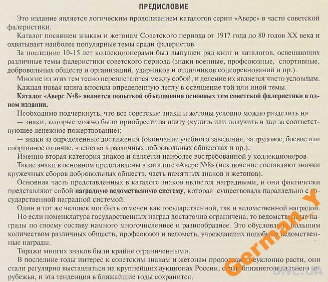 Приведено более 5000 отменного качества цветных изображений знаков, жетонов, документов и грамот. Большинство наград показаны с обоих сторон - аверс-реверс. Авторы каталога ставили целью объединить в одном издании все основные темы советской фалеристики, сделать его максимально информативным. Основная часть представленных в каталоге знаков является наградными, и они фактически представляют собой наградную ведомственную систему, которая существовала параллельно с государственной наградной системой. Ведомственные награды по своему составу намного многочисленнее и разнообразнее, и потому интерес к ним у коллекционеров со временем будет только возрастать.