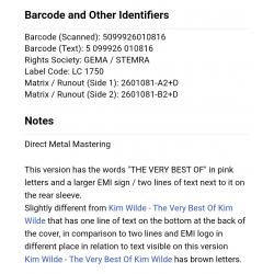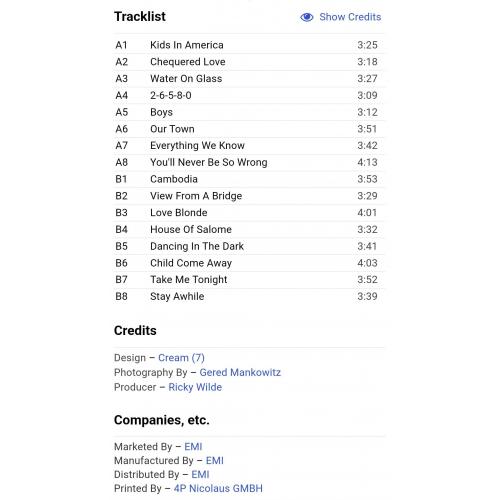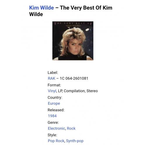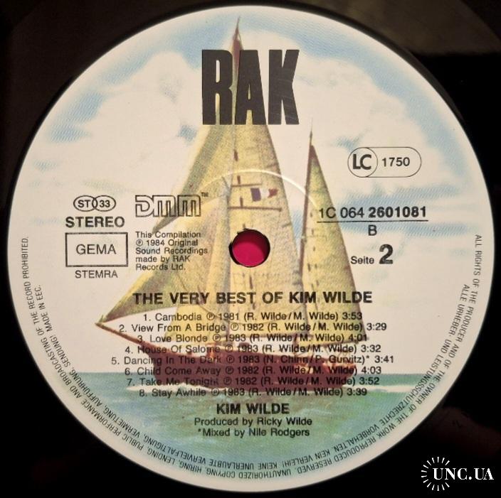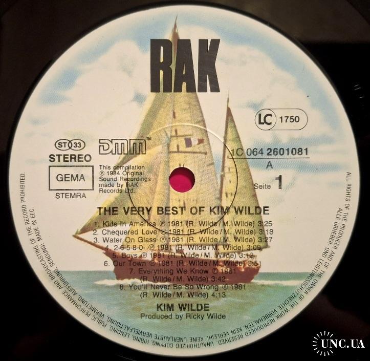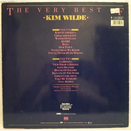 Вінілова платівка. Офіційна студійна збірка найкращих хітів, Британської радіоведучої, кіноактриси і музичної виконавиці стилів сінті поп, нова хвиля, гай-енерджі, поп-рок, Кім Вайлд (The Very Best Of Kim Wilde) 1981-84. Випуск фірми (RAK) Europe, 1984-ий рік. Оригінальне, першопресове Європейське видання. Стан платівки ЕХ+/ЕХ. Конверт глянцевий. Стан конверту ЕХ. Відправка по Україні службами доставки: Нова Пошта, Укр Пошта, Делівері. Також відправляємо посилки за кордон по цілому світу.