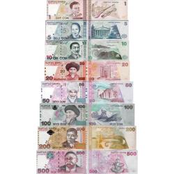 Киргизия - Киргизстан -Kyrgyzstan 1997-2004 set 8 pcs 1+5+10+20+50+100+200+500 som - Pick 13-22 UNC
