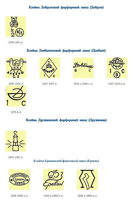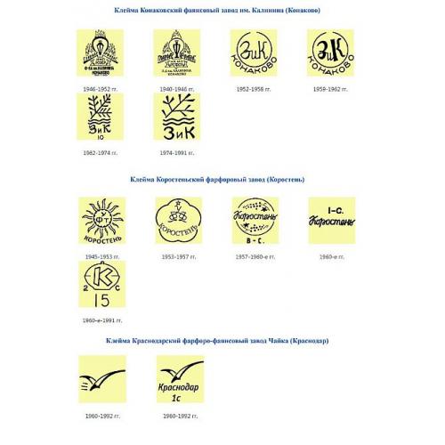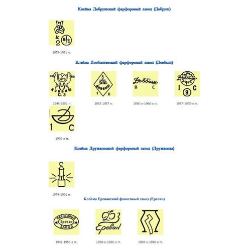 В справочнике рассмотрены клейма фарфоровых заводов, фабрик, комбинатов и объединений СССР с периода 1940-1991 гг