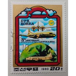 AirmailКНДР Северная Корея 1980 Перевозчик Conair CV-340, самолет, 20Сh, гашеная(I) (КЦ=1,6 евро)